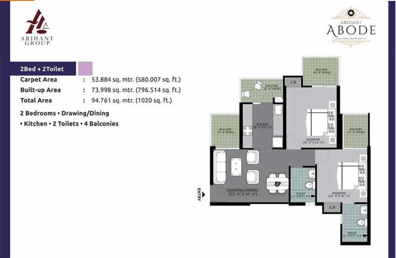 Yes, Arihant Abode is RERA registered with registration number UPRERAPRJ15792.